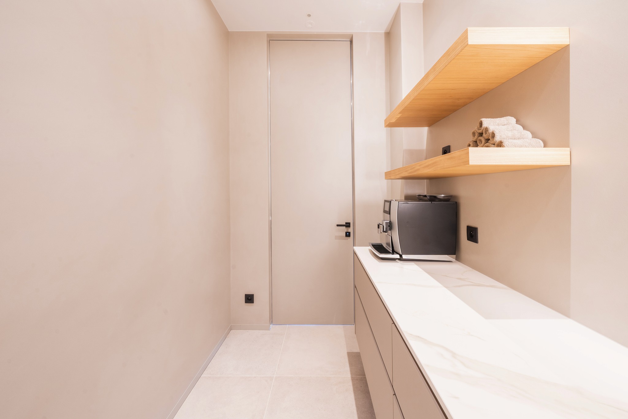 'The Flow' beschikt over een compacte keuken die optioneel kan worden uitgerust volgens uw wensen. Van presentaties en opleidingen tot recepties en exclusieve ontmoetingen, deze ruimte vormt het perfecte, flexibele canvas voor uw visie.